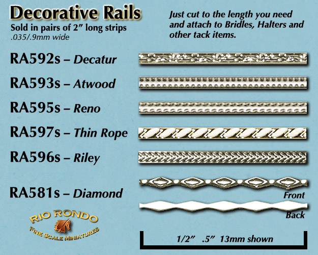 Use our decorative Rails to decorate tiny halters, bridles, breastcollars and other wee tack items.