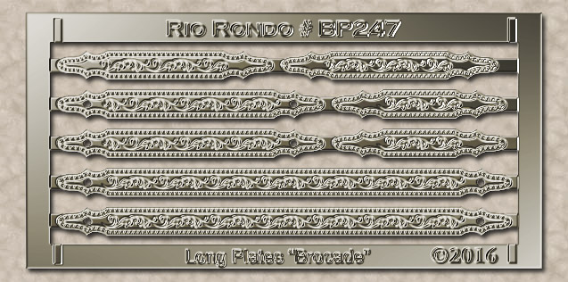 The Brocade style differs in that it is just a little narrower than the others and should fit within the margins on both sizes of lace. The two longer plates also feature "holes" for pin-mounting.